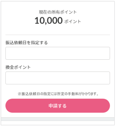 ※振込手数料として880ポイント引いた金額をご入金いたします。※月末時点で10,880P(入金額10,000円)以上所持していたユーザーが対象となります。